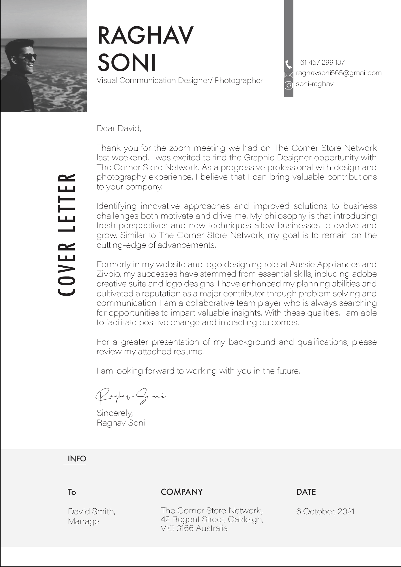 Showcasing my resume and cover letter I have used a photograph as a back drop of my project to also showcase the work of photography.